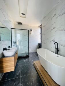 Soaking bathtub & walk-in glass showers
